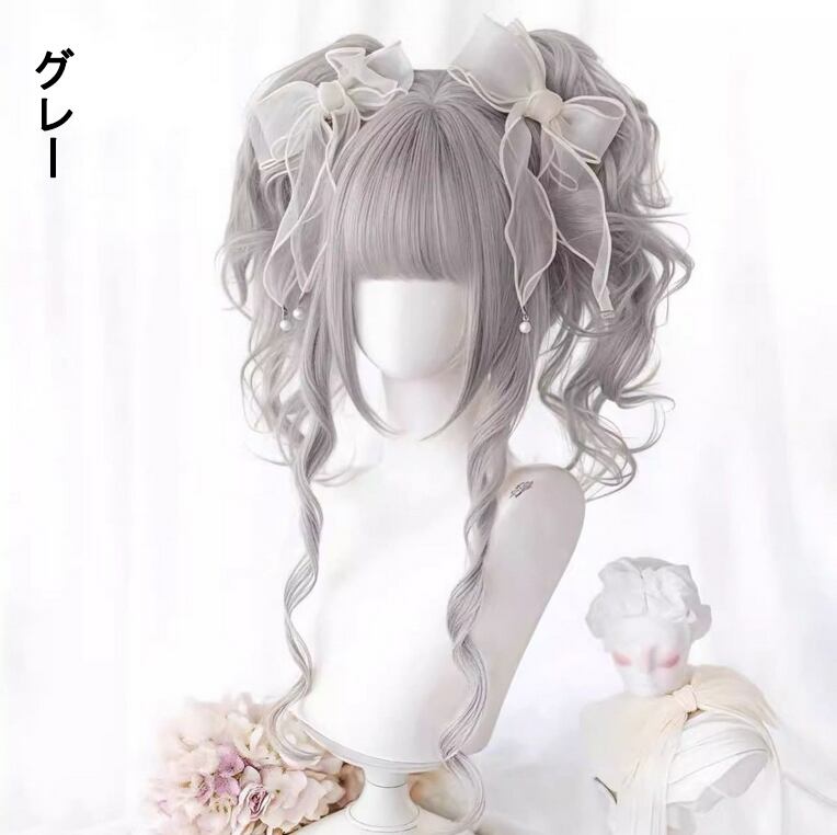 フルウィッグ レディース ロリィタ姫ウィッグ コスプレ用ウィッグ ウェイブ ツインテール