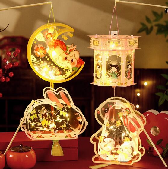 DIY提灯 可愛い六角手持ちランタン、古風中華風六角ランタン,撮影小道具、中秋節発光鉄アート、DIYランタン、PVCランタン