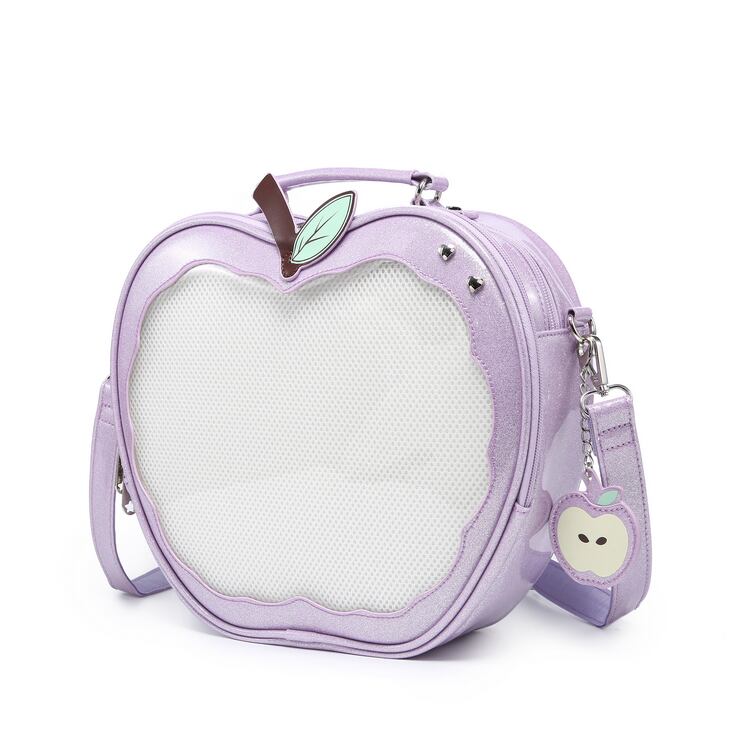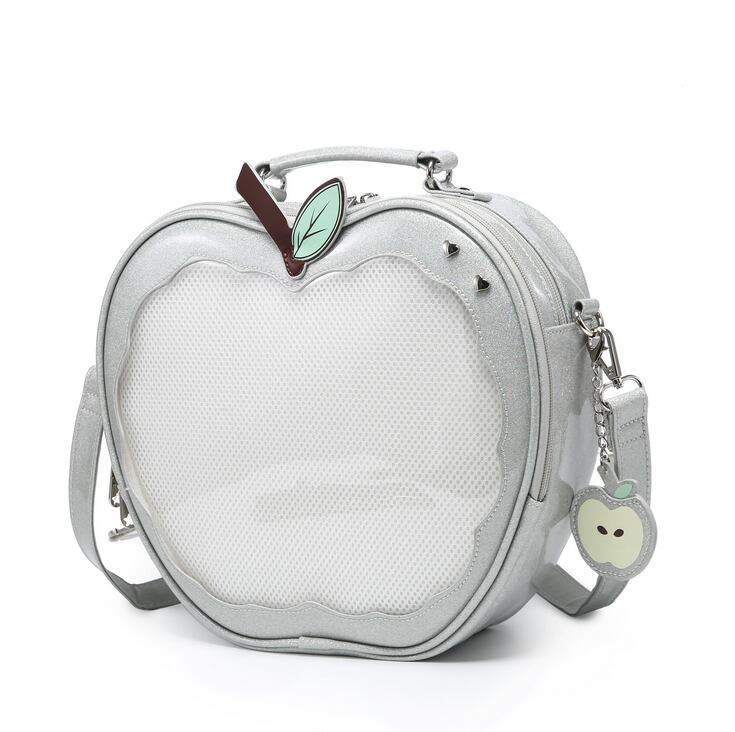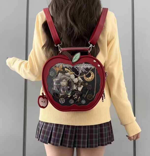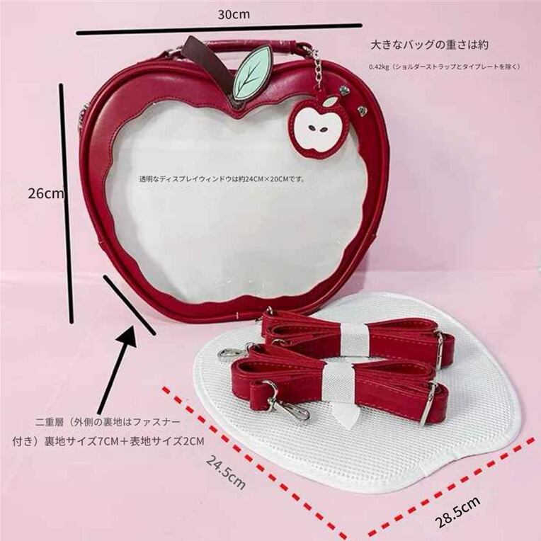 [大サイズ]アップル痛バッグ 可愛いスタイルのリンゴ痛バッグ 推し活トートバッグ ショルダーバッグ 斜めがけバッグ 女の子が横向きバッグを手に林檎痛バッグ