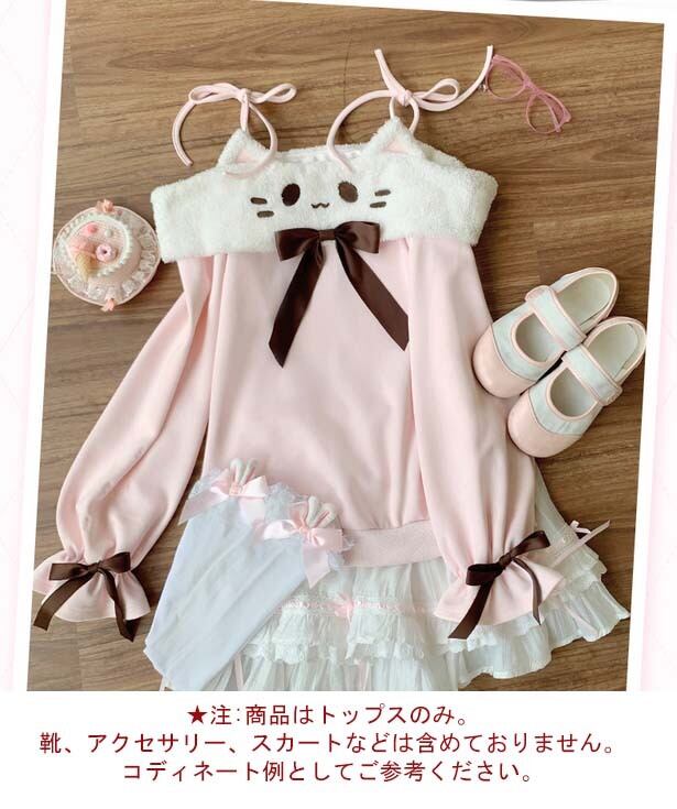 ゆめかわいい ふわふわもこもこねこちゃんオフショルダートップス