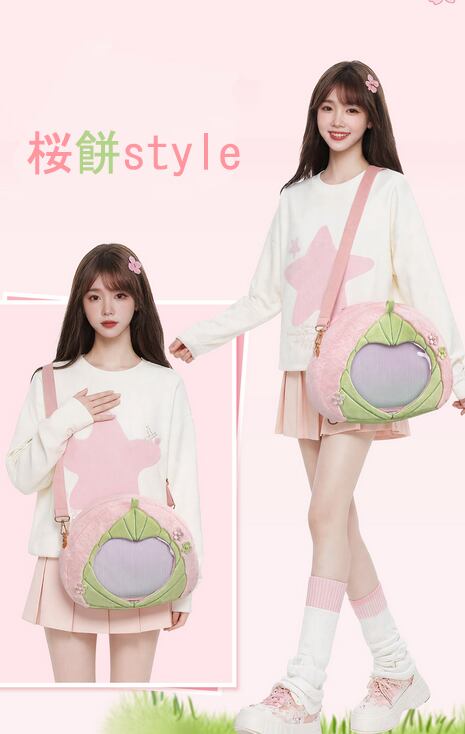 [バッグ本体のみ]桜餅痛バッグ 斜め掛けグッズ ピンク 小さめサイズ・大容量 二次元バッグ