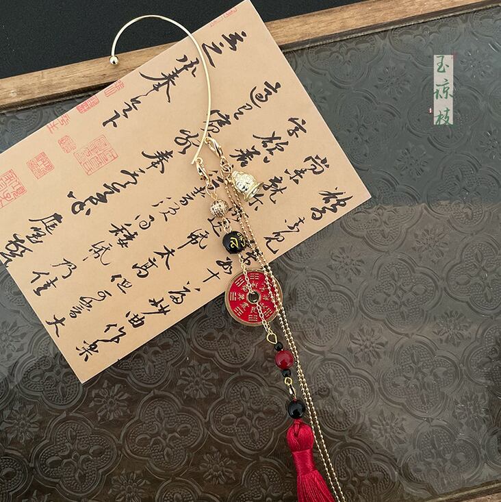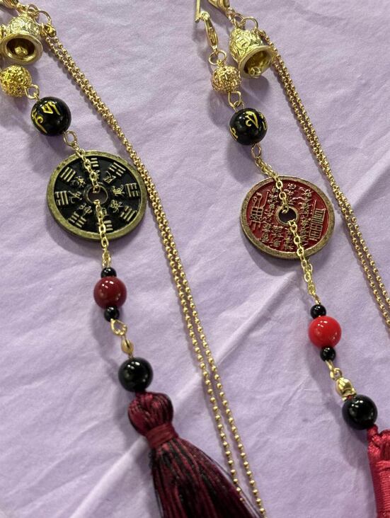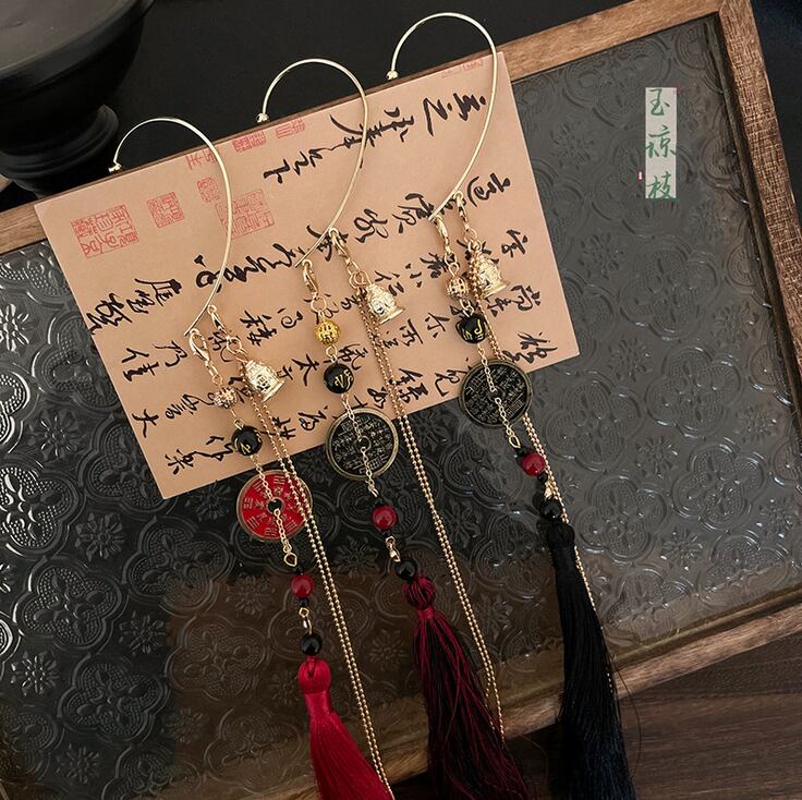 銅銭風パーツとタッセルが揺れ、漢服・中華風コーデ・和中ミックススタイルにもおすすめです。