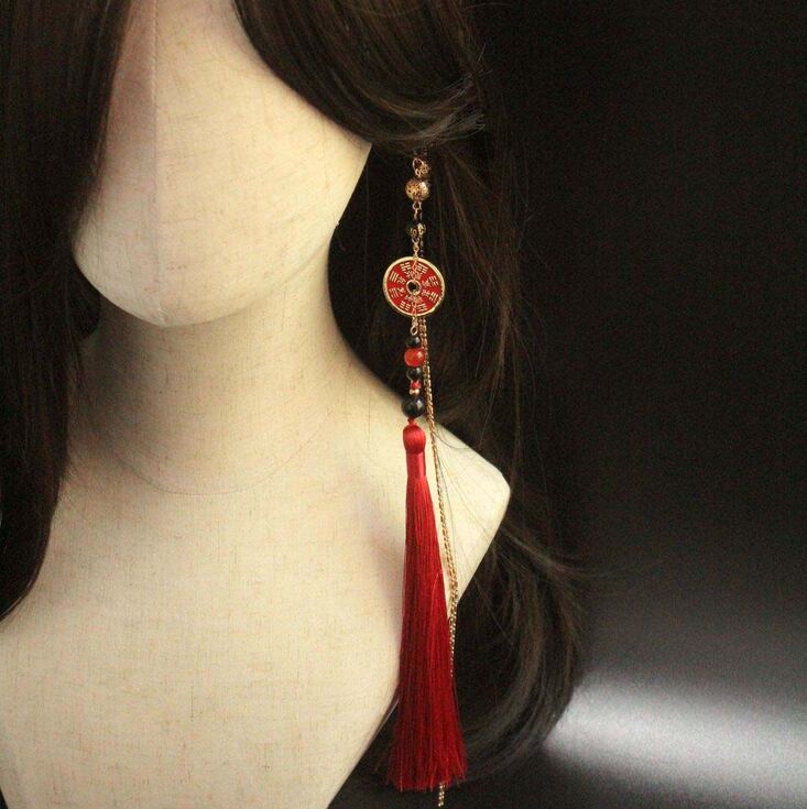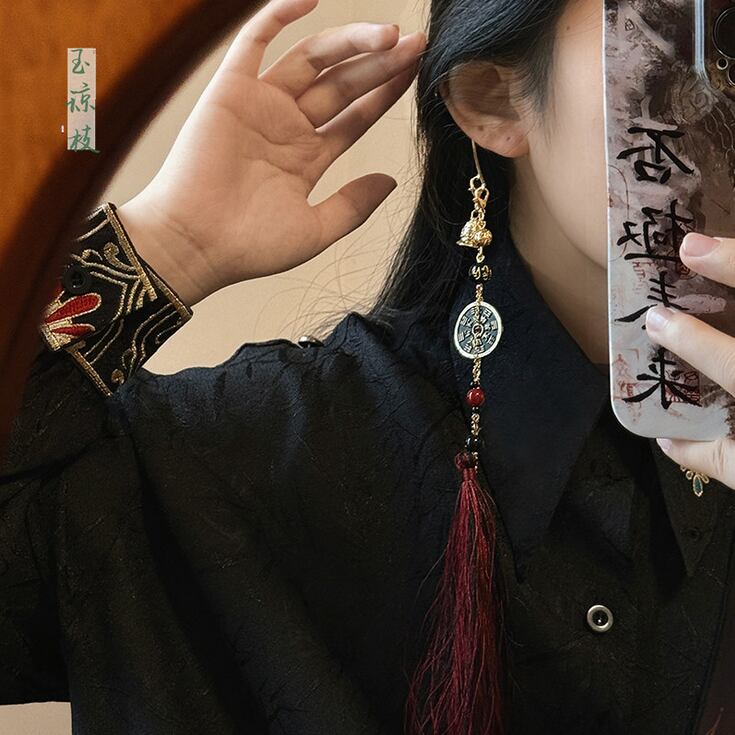新中式デザイン 山鬼モチーフ 銅銭タッセルイヤーアクセサリー|漢服・中華風コーデ