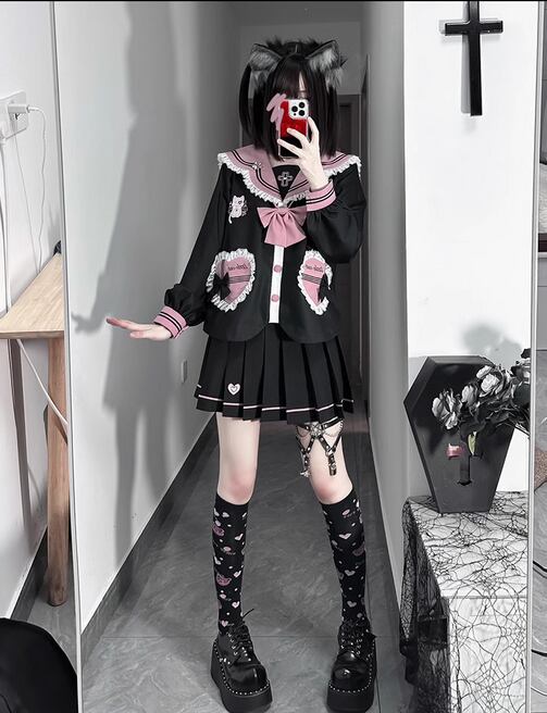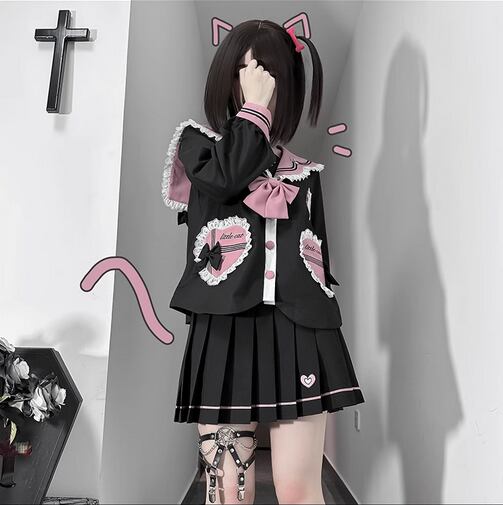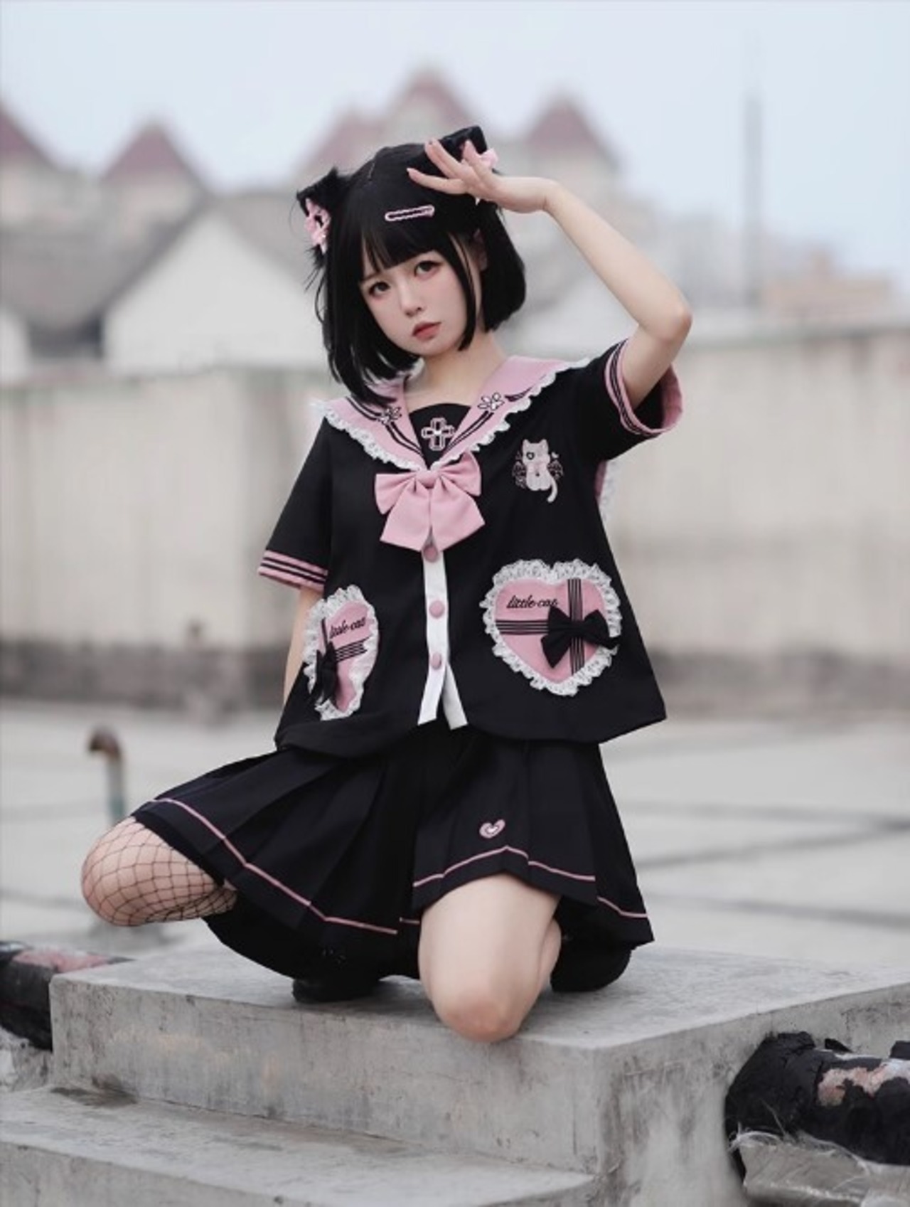 [長袖,半袖]ピンク ネコ セーラー 制服 キャット 猫
