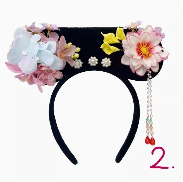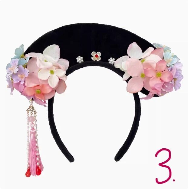 清朝古代アクセサリー 古代スタイルの満洲旗ヘッドバンド カチューシャ 中国王女のヘアフープ伝統的な衣装帽子 女の子のための女性満族旗頭 2.