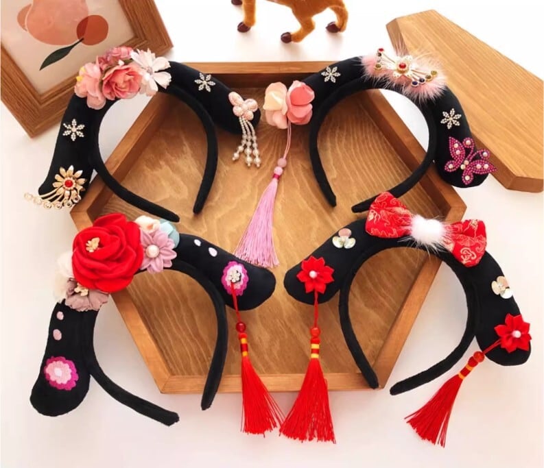 昔、中国青時代の両把頭(皇族の髪飾り)を現代使いやすくするため