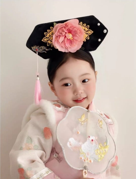 楽しい中国の王女/側室の頭飾りは、清の伝統的なデザインが特徴です。