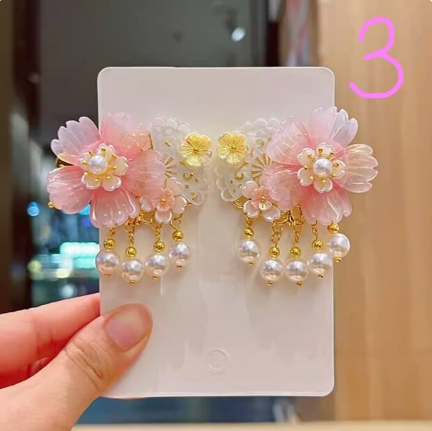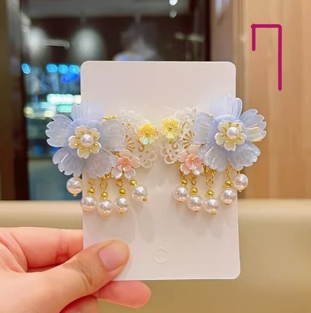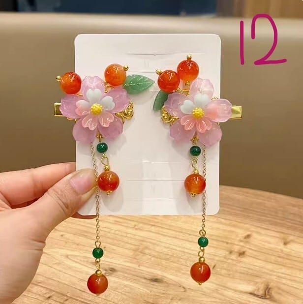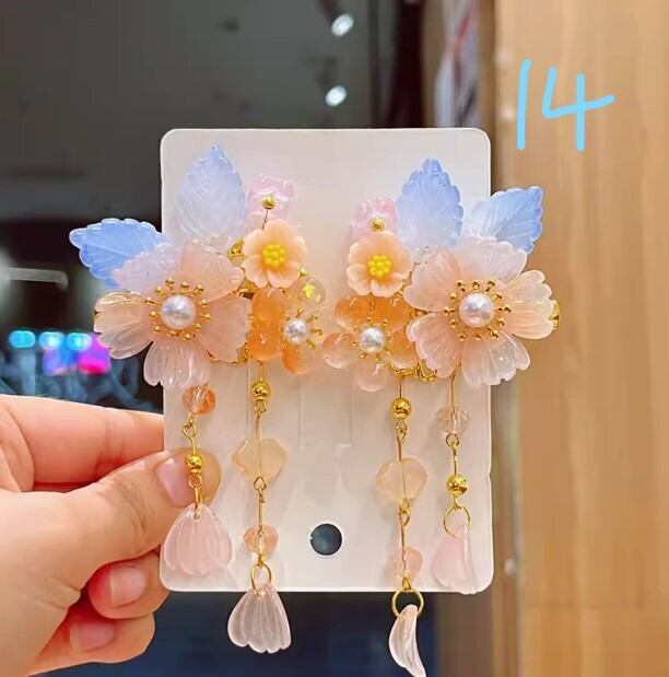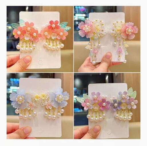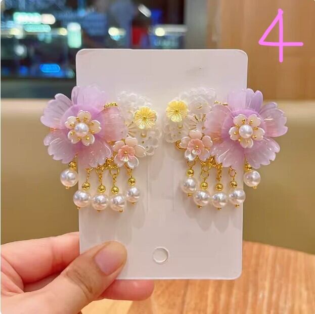 中華風アンティークヘアアクセサリー、スーパーフェアリーレトロフラワータッセルヘアピン、漢服頭飾り、中国風アクセサリー[大人子供兼用]