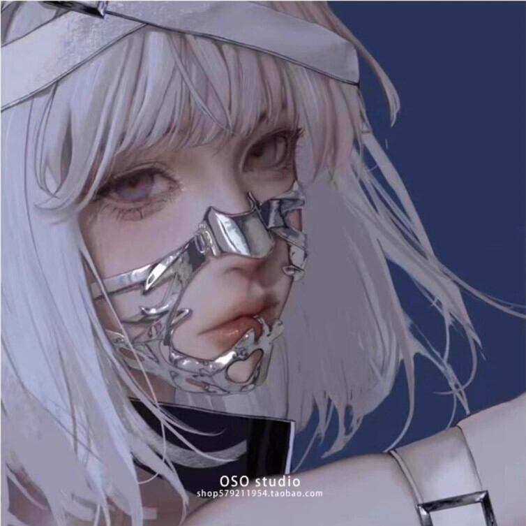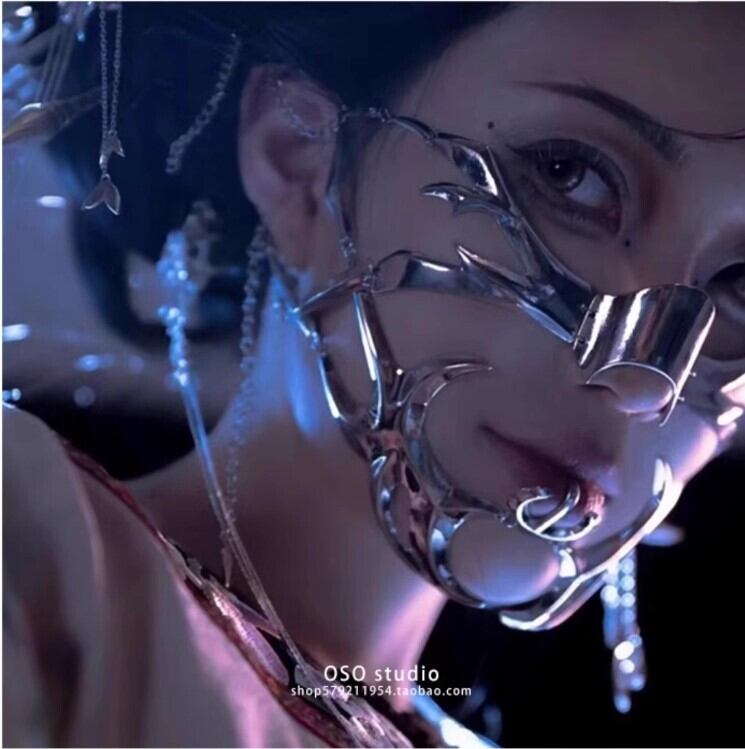 サイバー パンクメタルマスクニッチデザイン特殊形状流体機械感覚 顔飾りイヤリングセット男女兼用 調整可能
