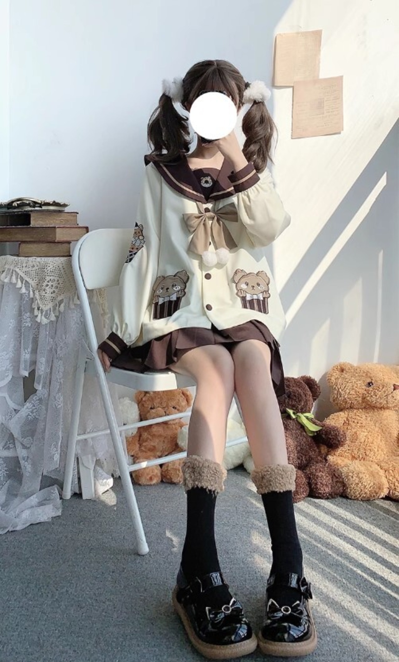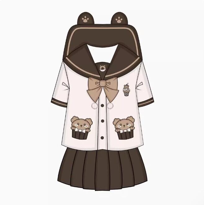 [半袖,長袖]サブカル系 熊ちゃんセーラー服 3点セット くま 制服 JK ロマンティック かわいい