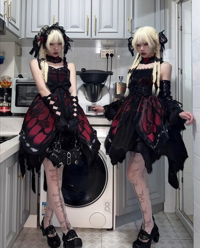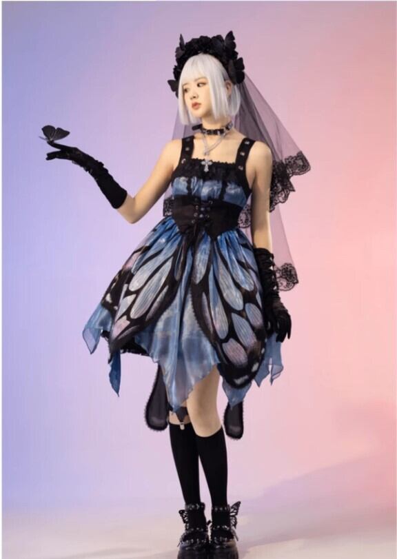 [ウエストコルセットタイプ]ゴシックロリータ 蝶々*ジャンパースカート,スカート