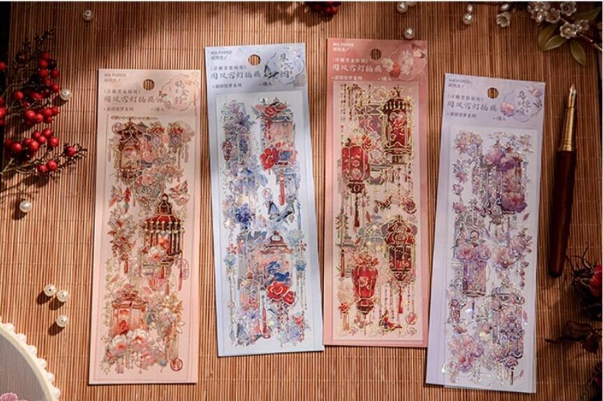 [游园惊梦系列平张贴纸]中国風エンボスフラットステッカー 携帯電話ケース装飾ステッカー防水 レリーフ風ステッカー(4種類)