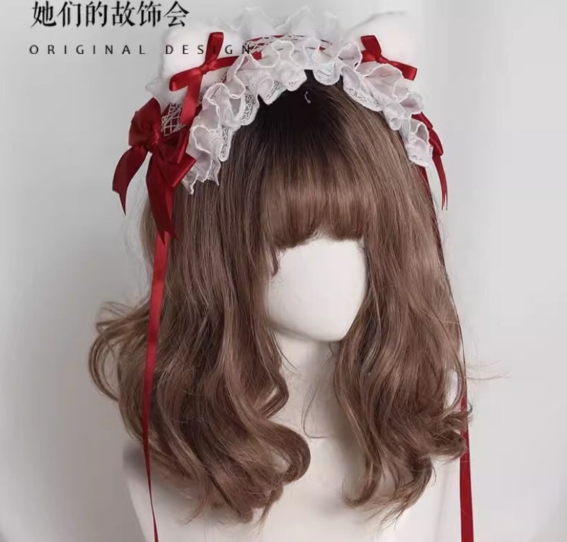猫耳ロリィタヘッドドレス ロリータ ヘアアクセサリー 赤 ピンク 青 レース リボン 髪飾り コスプレ メイド 衣装 可愛い