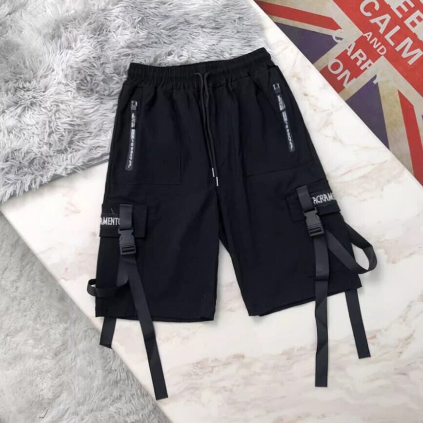 夏のショーツ貨物パンツ男性ファッションストリートウェアヒップホップパンク男性ズボンリボンスポーツ服