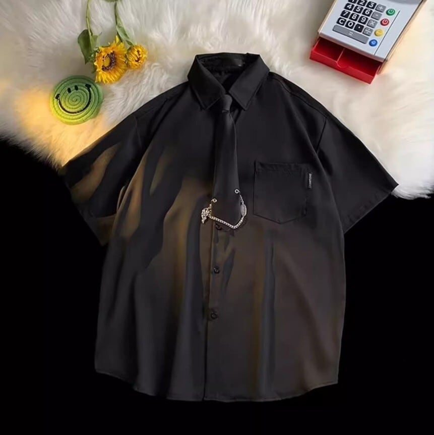 メンズ 半袖シャツ ネクタイ付きシャツ 学生風 制服コーデ男女兼用