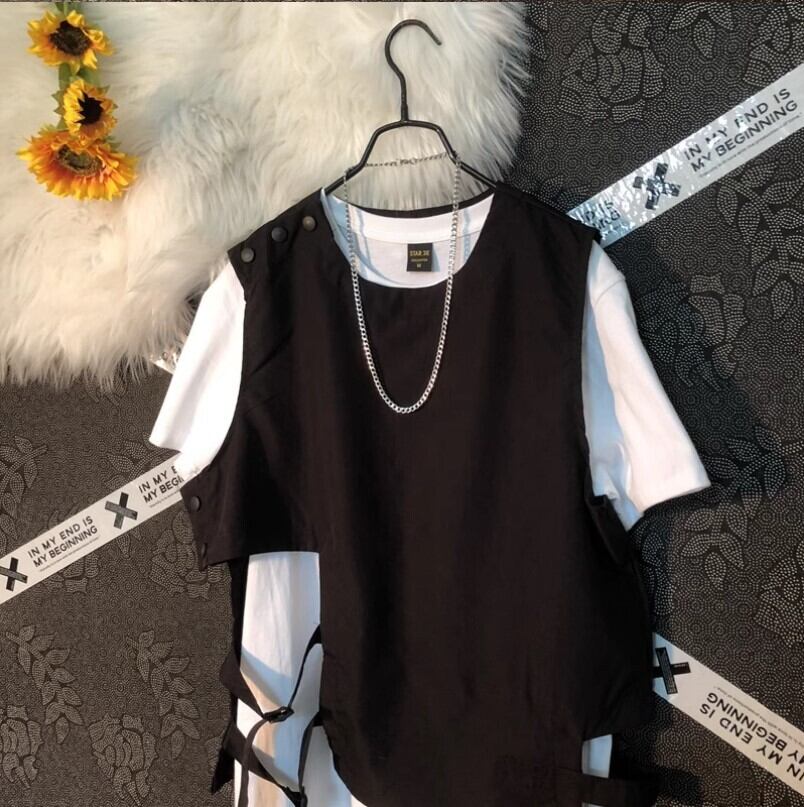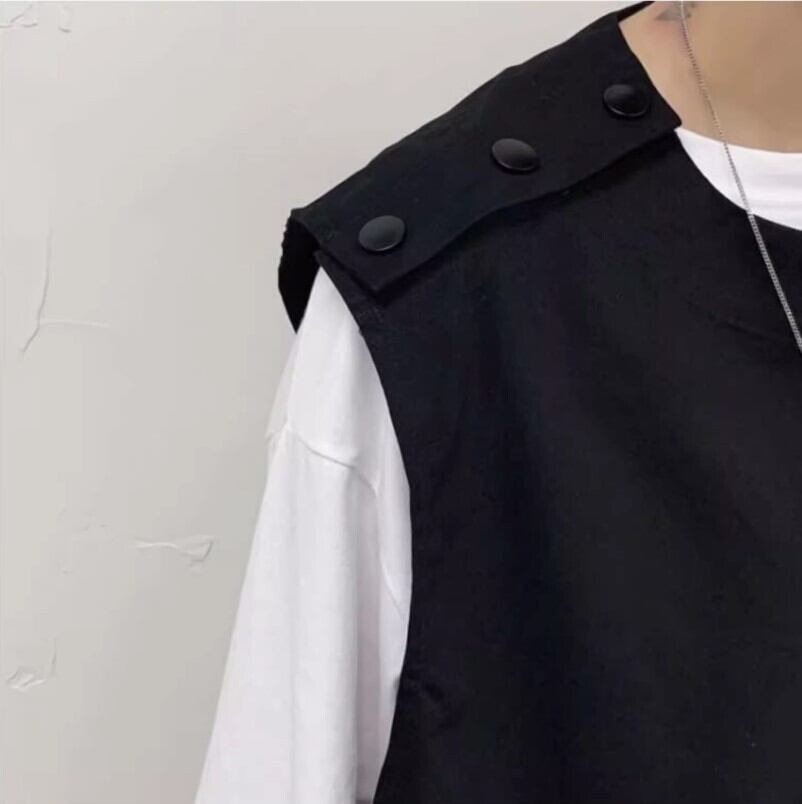 [男女兼用] 韓国スタイルルーズベスト 黒ベスト メンズベスト 重ね着 コーディネート 男性 Tシャツ 白Tシャツ 夏物
