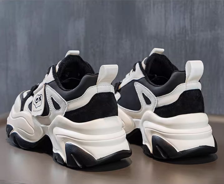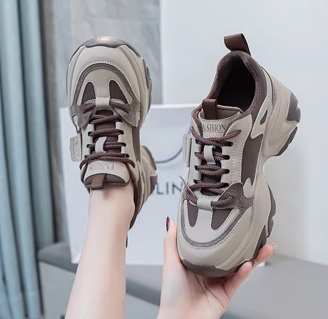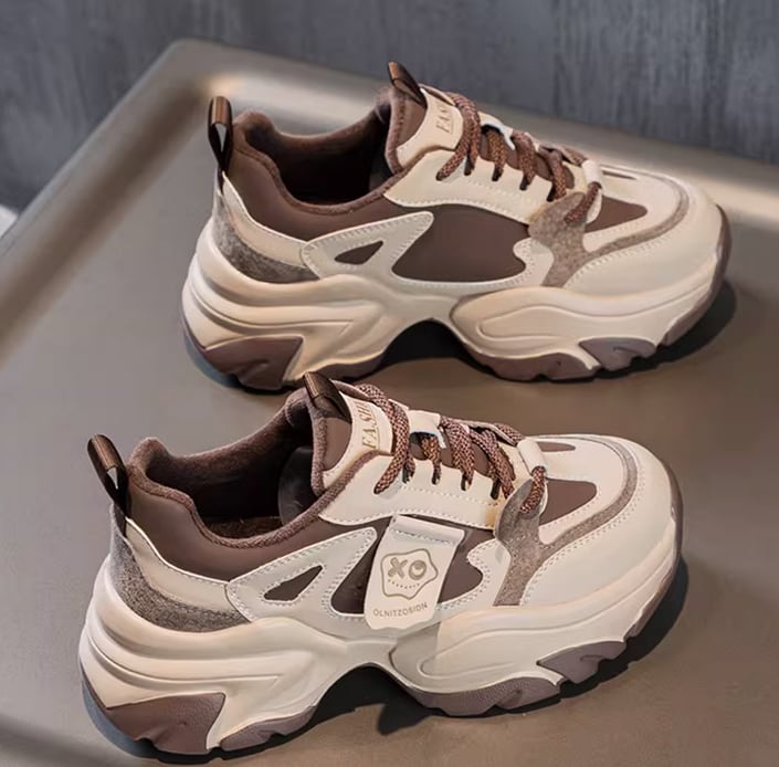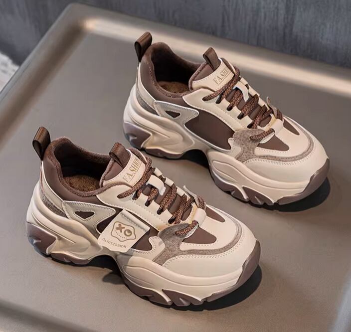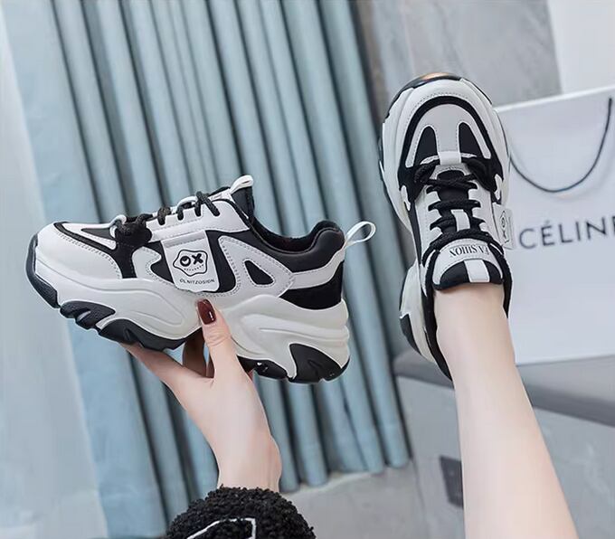 [リニューアル]スニーカー レディース 厚底 白 バイカラー ダッドシューズ ハイテクスニーカー カジュアル スポーツ 韓国風 シューズ 学生 靴 クツ 紐 レースアップ 黒 カーキ かわいい おしゃれ