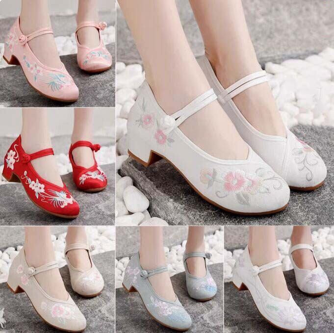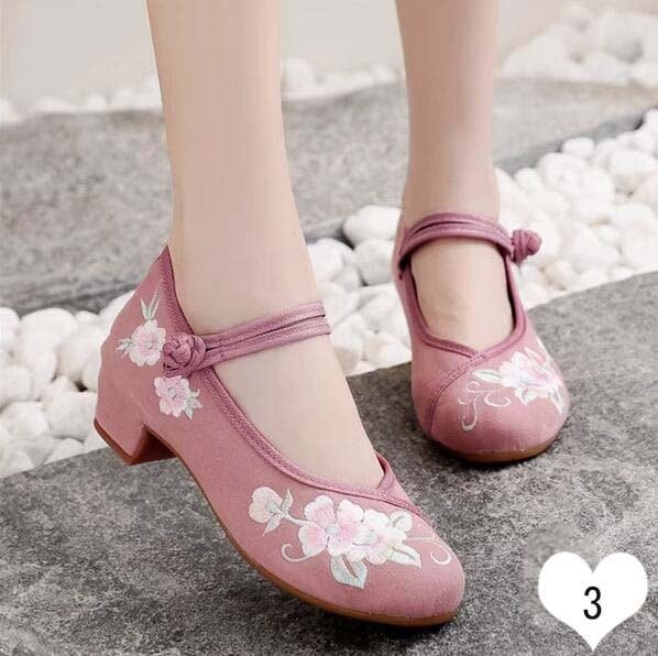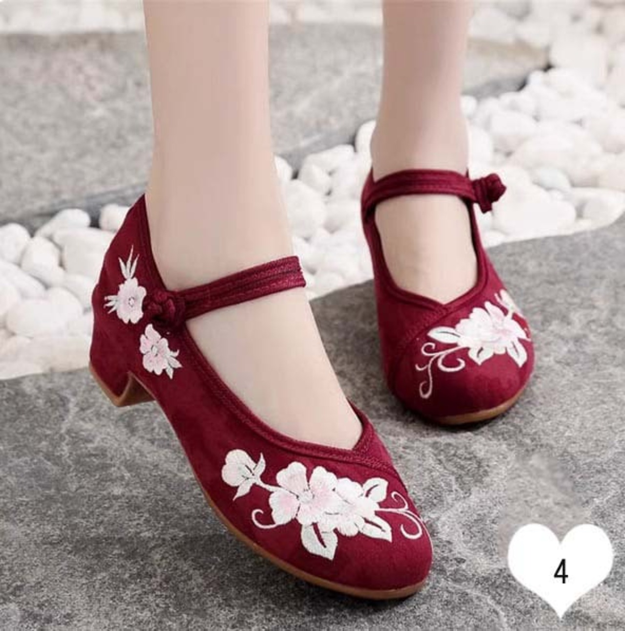 1.[キッズ-大人]中華風 刺繍靴 手作り靴 チャイナ靴 中国風ボタンヒール3cm 女の子 可愛い 春夏秋冬 ワンタッチパンプス レディース ラウンドトゥ 柔らかい靴