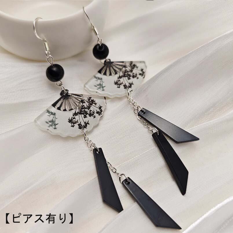 中華風耳飾り ピアスorピアス無し レディース 扇子 竹柄 水墨画