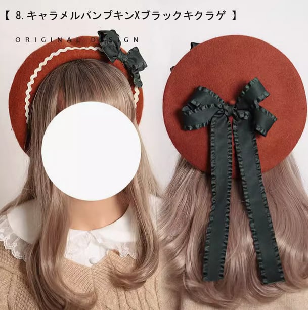 ロリータ風2. ベレー帽 帽子 ハット ウール リボン 蝶結び