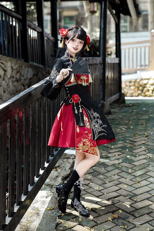 中華風ロリィタ 中華ロリータ 華ロリ セットアップ 刺繍