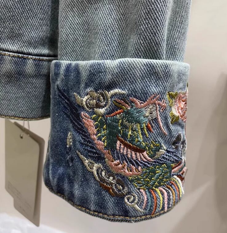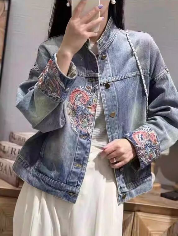 中華風アウター★ ジャケット デニムジャケット 刺繍 ブルー 中国風エスニックスタイル刺繍服