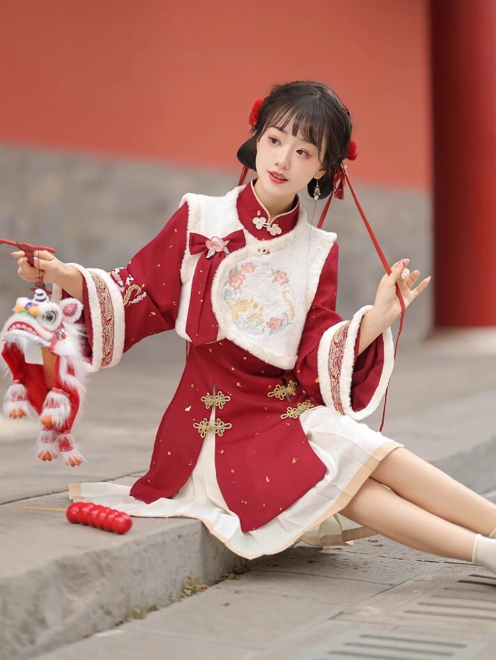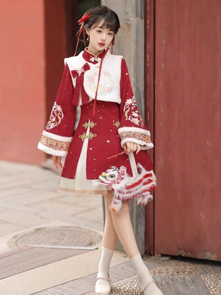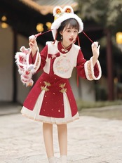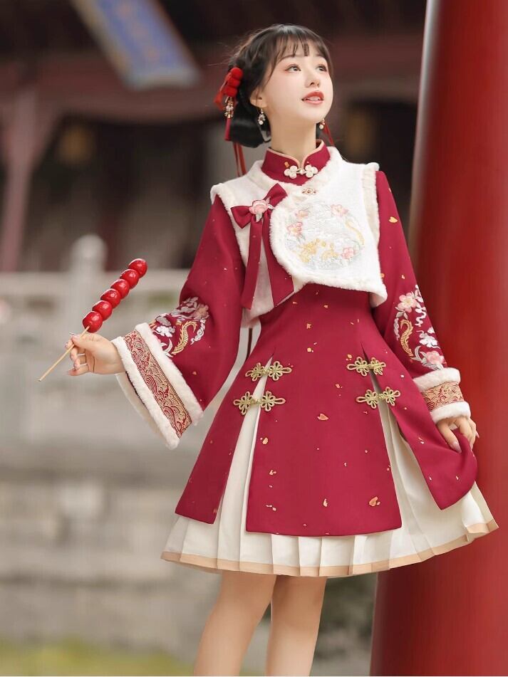 [3点セット]中華宮廷風Lolita秋冬ワンピース 改良チャイナ服 中華服