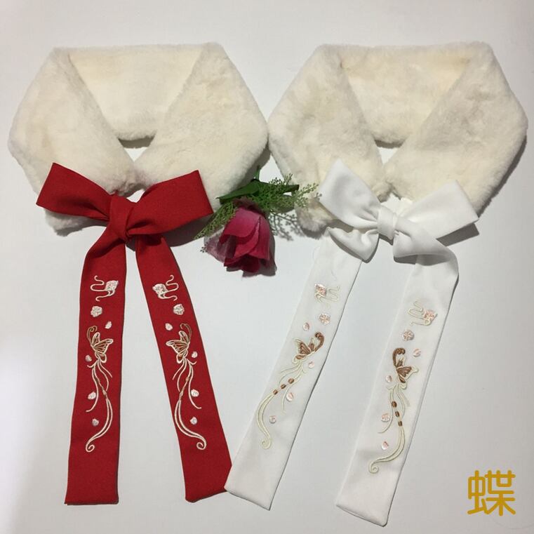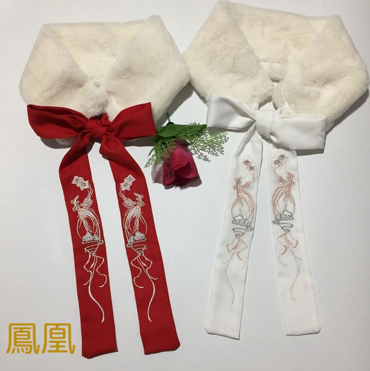 刺繍マフラー 刺繍スカーフ、漢服衣装アクセサリー、レトロな毛皮の襟、暖かい冬の刺繍、古代スタイル、多用途、厚みのあるスカーフ、毛皮の襟