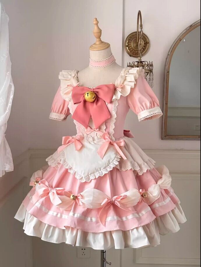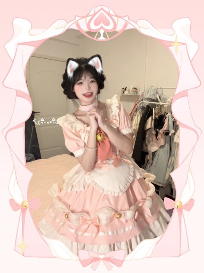 ピンクメイド服のモデルさんは身長162cm 体重45kg Sサイズ