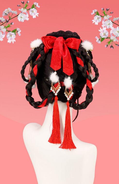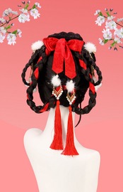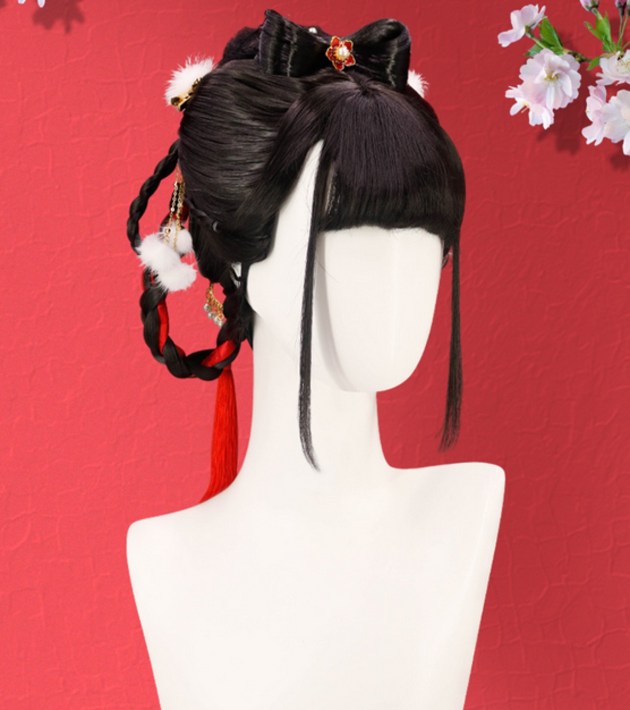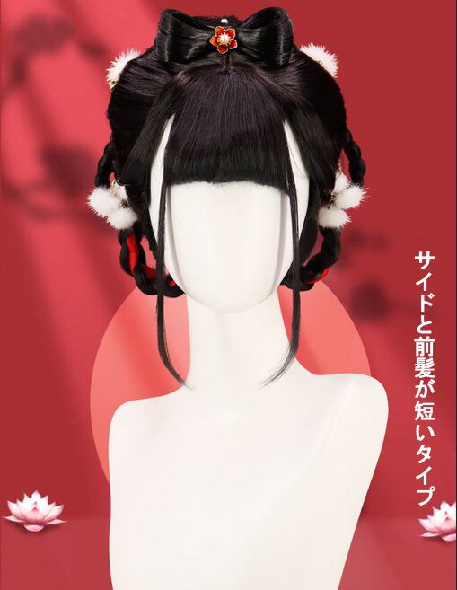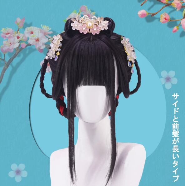 [Cタイプ]古代衣装フルヘッドセット漢服ウィッグ、古典女性フルヘッドセット、古代スタイルのロングストレートヘア、衣装スタイル漢服ウィッグ