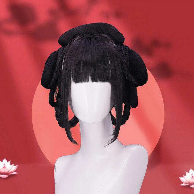 [Dタイプ]古代衣装フルヘッドセット漢服ウィッグ、古典女性フルヘッドセット、古代スタイルのロングストレートヘア、衣装スタイル漢服ウィッグ