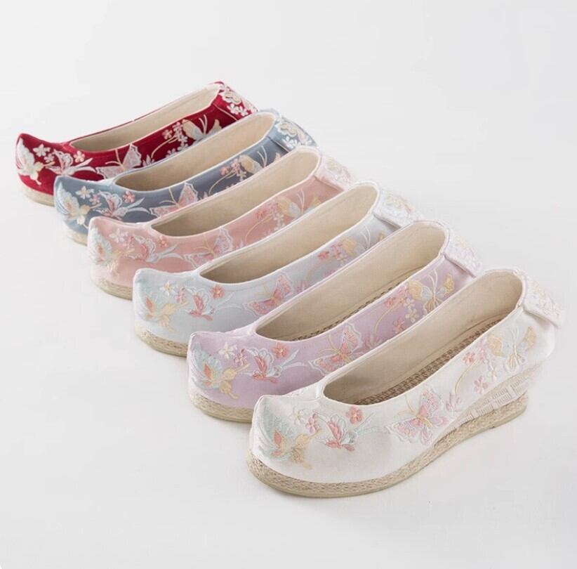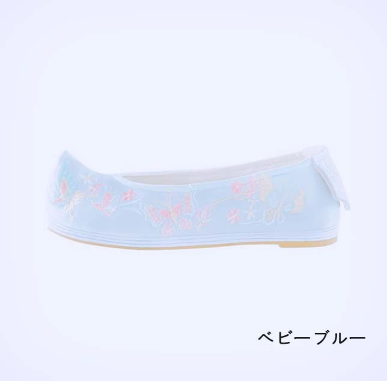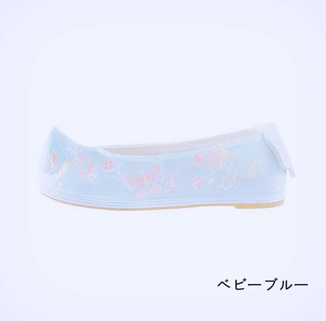 [フラットシューズ]綺麗な蝶の刺繍毛皮漢服用靴 古代スタイルの女性用漢服綿靴 刺繍毛皮蝶