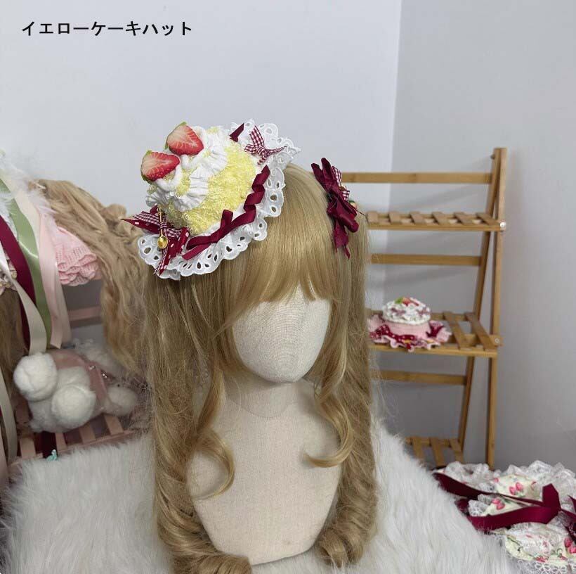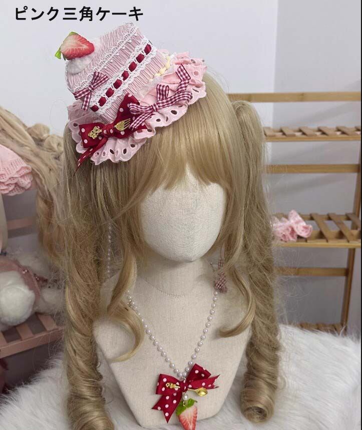 Lolita苺ケーキ帽子、ストロベリーケーキ帽子、うさ耳帽子
