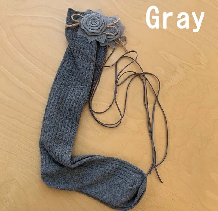 春と夏の手作りローズ牛革ロープストラップ女性用ミッドカーフソックス、レトロカーフソックス、パイルソックス