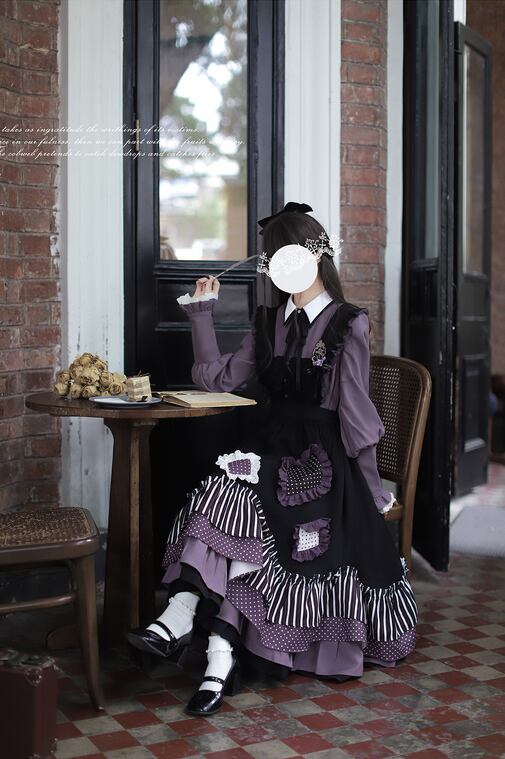 [予約商品]魔女学院風オリジナルロリータ ストライプエプロンスカート