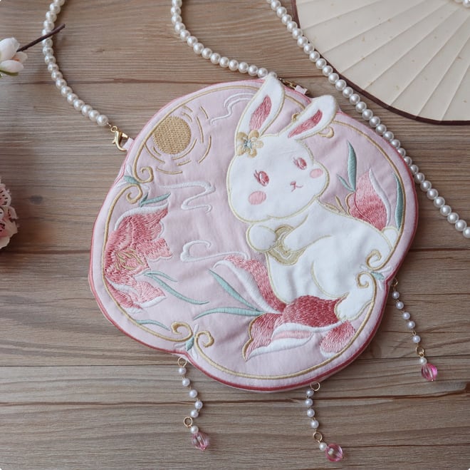 [*タッセル無]かわいいウサギの刺繍バッグ クロスボディバッグ 多用途携帯電話バッグ