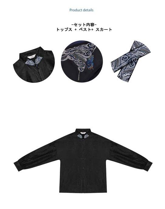 [3点セット]幻想蝶織部オリジナルの唐時代の漢服 女性用唐代発光サテン引き裂きスカート
