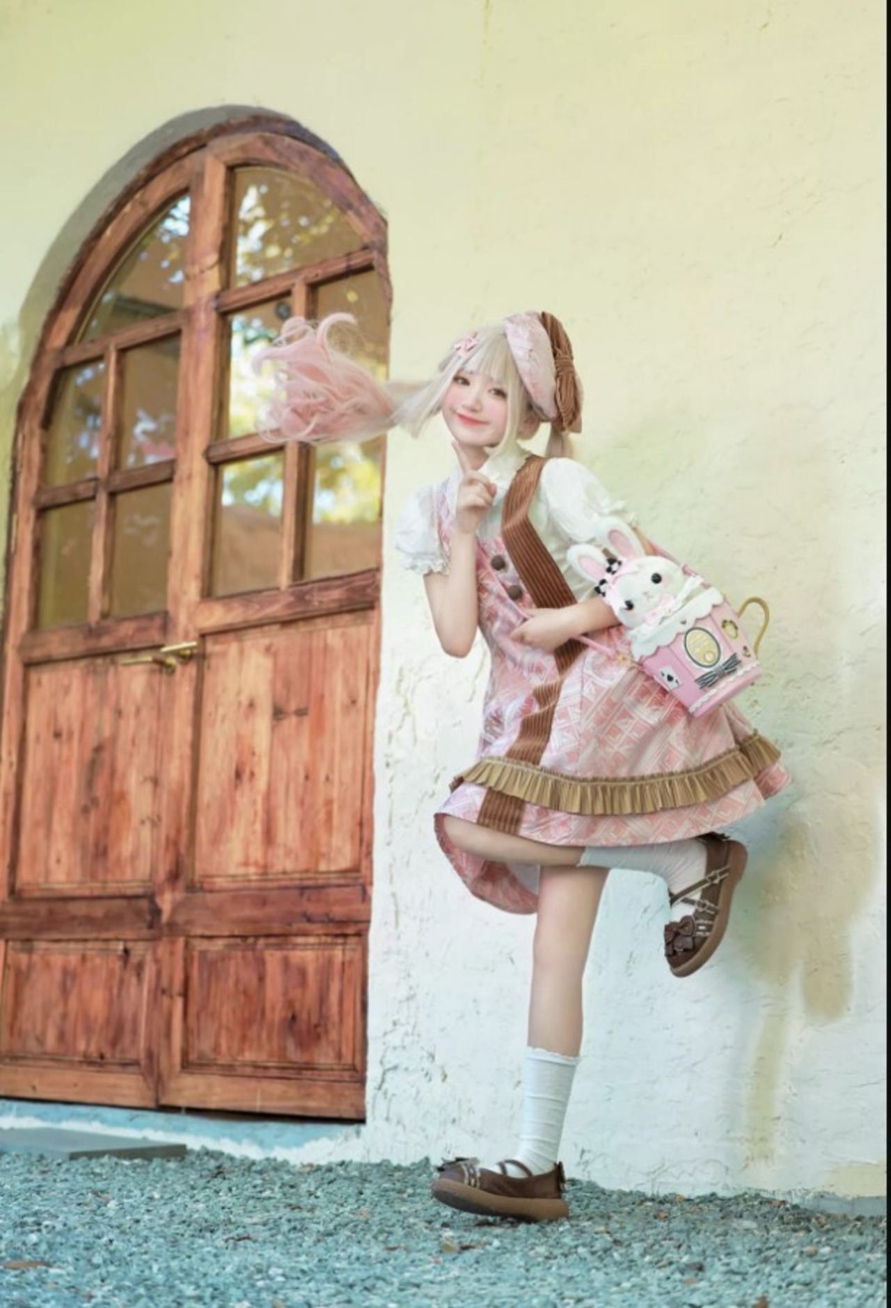 [ピンク]ティーカップウサギ オリジナル ロリータ かわいいウサギ ぬいぐるみ Lolitaショルダーバッグ ティーカップ型クロスボディ バッグ