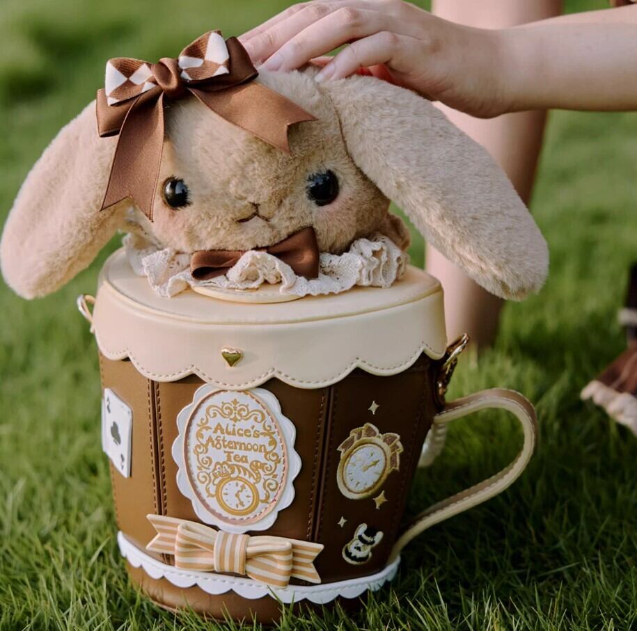 [予約商品4月末発売予定]ティーカップウサギ オリジナル ロリータ かわいいウサギ ぬいぐるみ Lolitaショルダーバッグ ティーカップ型クロスボディ バッグ